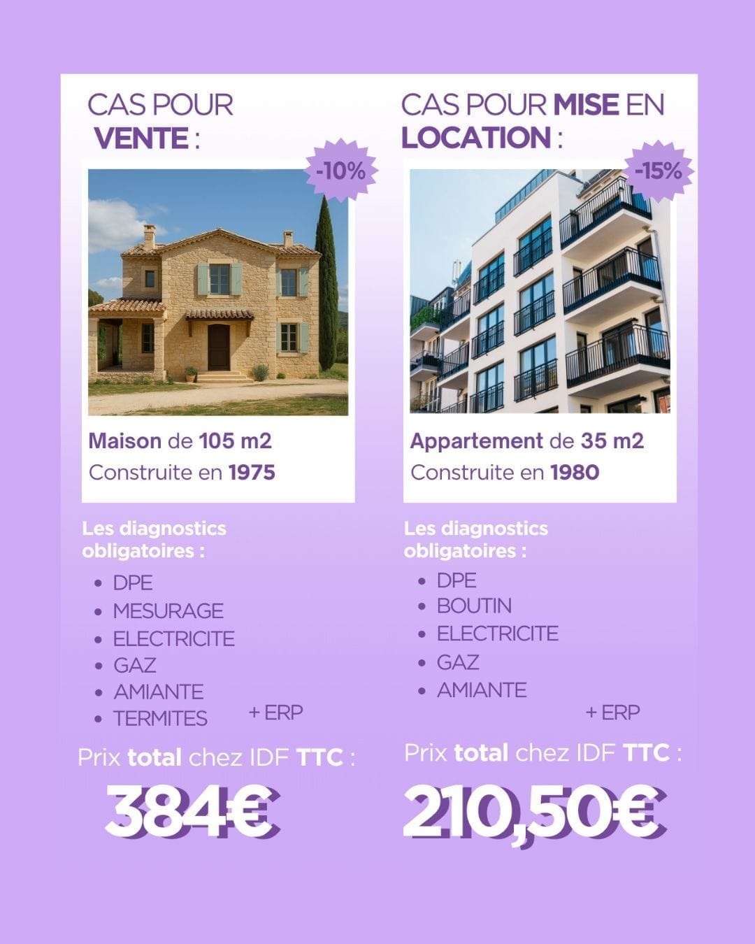 Pour une location, les diagnostics les plus fréquents sont : DPE, plomb (avant 1949), électricité, gaz, ERP.